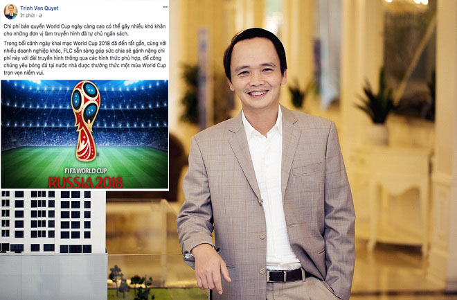 Đến thời điểm hiện tại, VTV vẫn chưa chính thức công bố về sở hữu bàn quyền World Cup 2018. Quá suốt ruột, Chủ tịch CLB FLC Thanh Hóa Trịnh Văn Quyết sẵn sàng chia sẻ kinh phí với nhà đài để mua bản quyền World Cup.