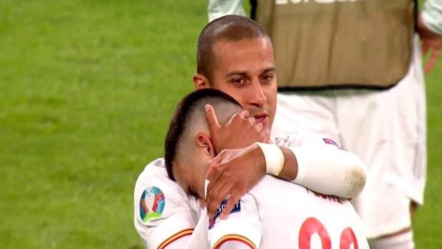 Thiago Alcantara của Liverpool đã an ủi đồng đội trẻ Pedri sau thất bại của Tây Ban Nha trước Ý ở bán kết Giải vô địch châu Âu.